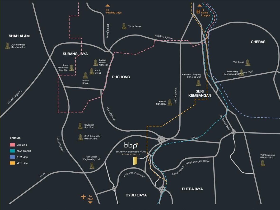 PUCHONG PULAU MERANTI well-connected to major highways including LDP, SKVE, and MEX, offering easy routes to key areas in Klang Valley.